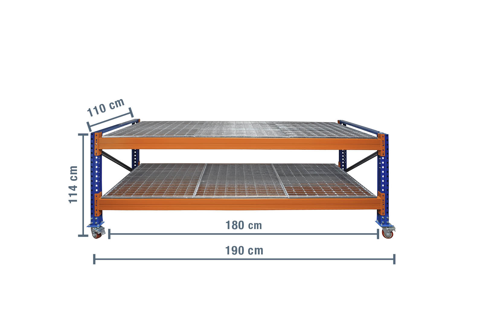 1,9 m arbetsbänk för tung last grundbord mobilt SLW1500 / 110 cm djup / 1,14 m höjd / nivåer: 2 / stöd galler