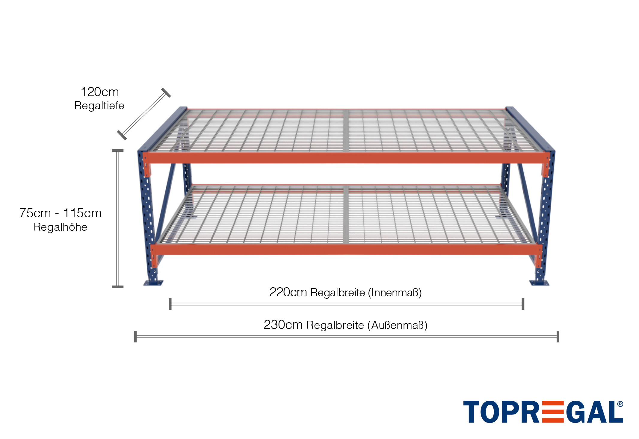 Alla uppgifter avser jämnt fördelade laster. Vid lastning får hyll- och fältbelastningen inte överskridas. I princip gäller de aktuella riktlinjerna för säkerhet och hälsa på arbetsplatsen (Tysk DGUV-regel 208-061) vid användning. TOPREGAL tar inget ansvar för olyckor/skador som orsakas av felaktig användning. Vår rådgivande expertgrupp svarar gärna på alla frågor du kan tänkas ha. De angivna måtten är ungefärliga och kan avvika med några centimeter. Kontakta oss om du behöver de exakta måtten för din önskade produkt.