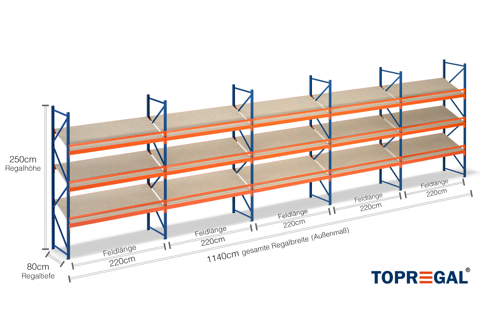 Alla uppgifter avser jämnt fördelade laster. Vid lastning får hyll- och fältbelastningen inte överskridas. I princip gäller de aktuella riktlinjerna för säkerhet och hälsa på arbetsplatsen (Tysk DGUV-regel 208-061) vid användning. TOPREGAL tar inget ansvar för olyckor/skador som orsakas av felaktig användning. Vår rådgivande expertgrupp svarar gärna på alla frågor du kan tänkas ha. De angivna måtten är ungefärliga och kan avvika med några centimeter. Kontakta oss om du behöver de exakta måtten för din önskade produkt.