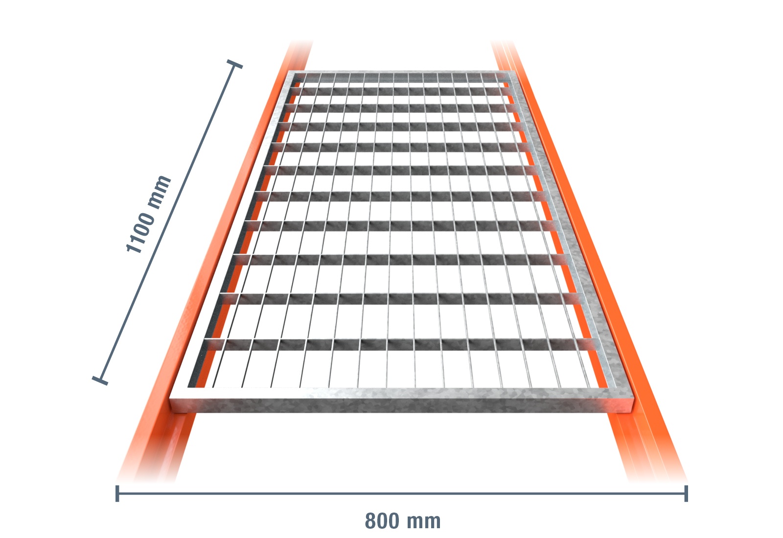 1.100 mm galler av stål för lagerhylla LR2000 / 800 mm djup / 25 mm höjd
