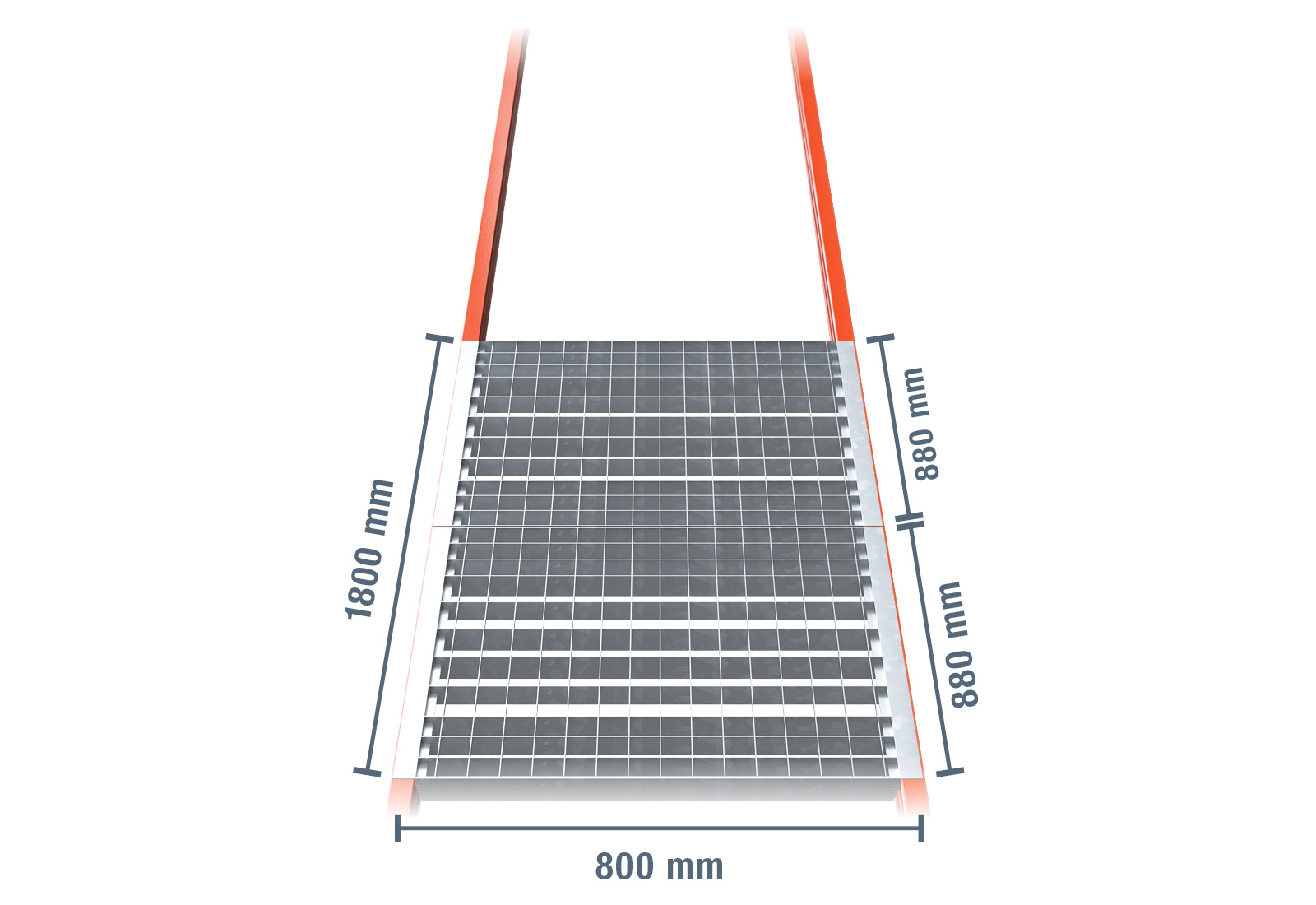 Detta galler består av 2 moduler med måtten 880 mm x 800 mm. Dessa har en maximal belastning på 1.600 kg.