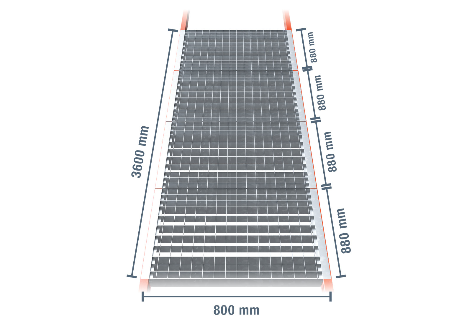 - Varmförzinkat 360 cm brett galler med en hög belastning på 3.200 kg