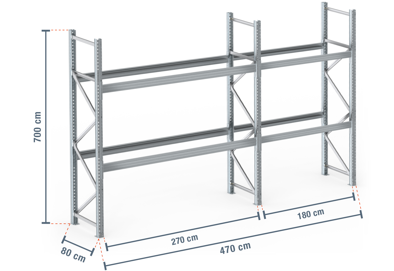 4,7 m pallhylla PR9000F varmförzinkad / 80 cm djup / 7 m höjd / 2 nivåer för 15 europapallar