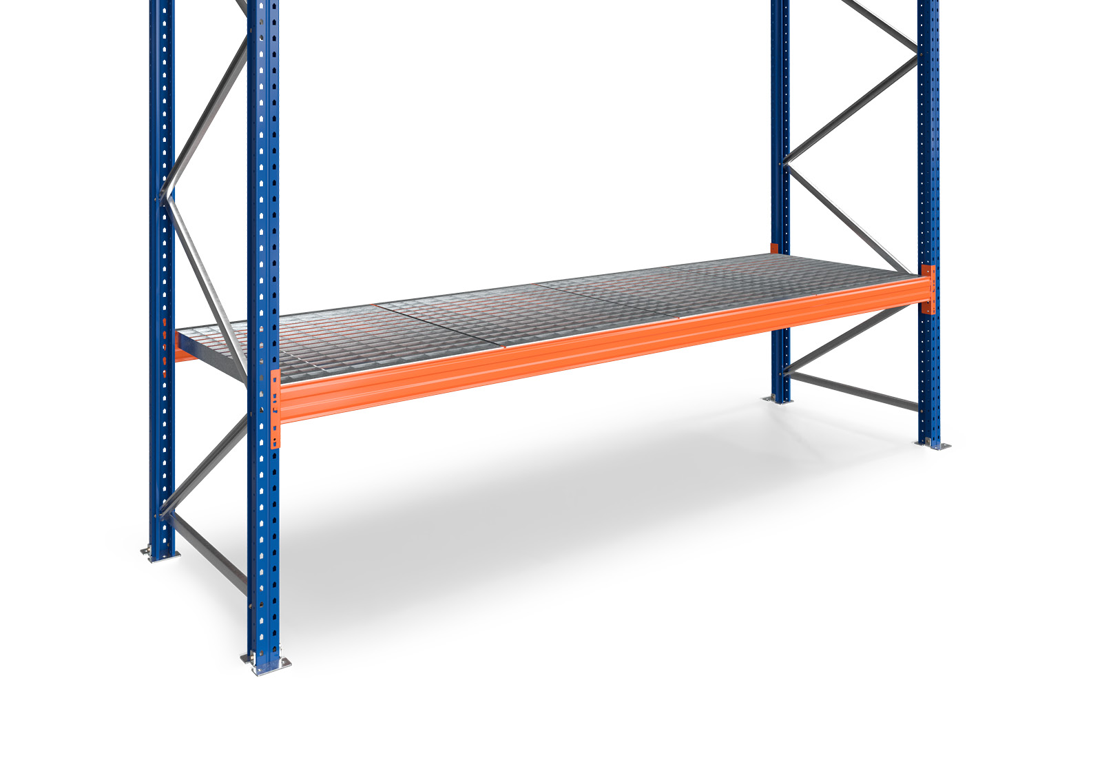 TOPREGALGallerhyllstöden erbjuder ett högt skydd mot vätskor och korrosion på grund av den varmförzinkade ytan. På så sätt kan de användas optimalt utomhus, eller till och med i rum med hög luftfuktighet. Även vid arbete med slipande eller frätande medel har varmförzinkade galler tydliga fördelar. Därmed uppfyller de också de förekommande brandskyddsbestämmelserna. Dessutom ger galler en bättre överblick över det förvarade godset, eftersom man kan se det redan underifrån i hyllan. Varje gallermodul har en maximal belastning på 800 kg vid jämn lastfördelning och en maskstorlek på 9,9 x 9,9 cm.Vid lastning av din pallhylla, beakta de angivna maximala fack- och fältbelastningarna.