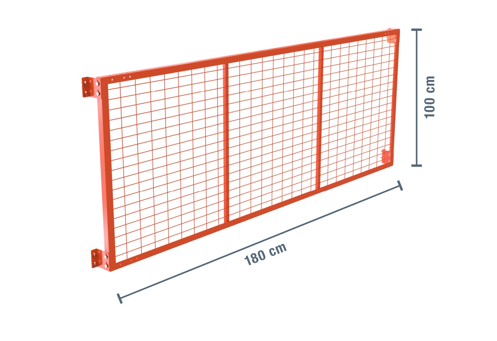 TOPREGAL bakvägg i nät förhindrar att pallar och löst gods oavsiktligt skjuts bakåt. Denna artikel har en längd på 1.800 mm och är 1.000 mm hög. Skruvplattor och skruvar för fastsättning i hyllsystemet ingår och är kompatibla med alla standard pallställ.