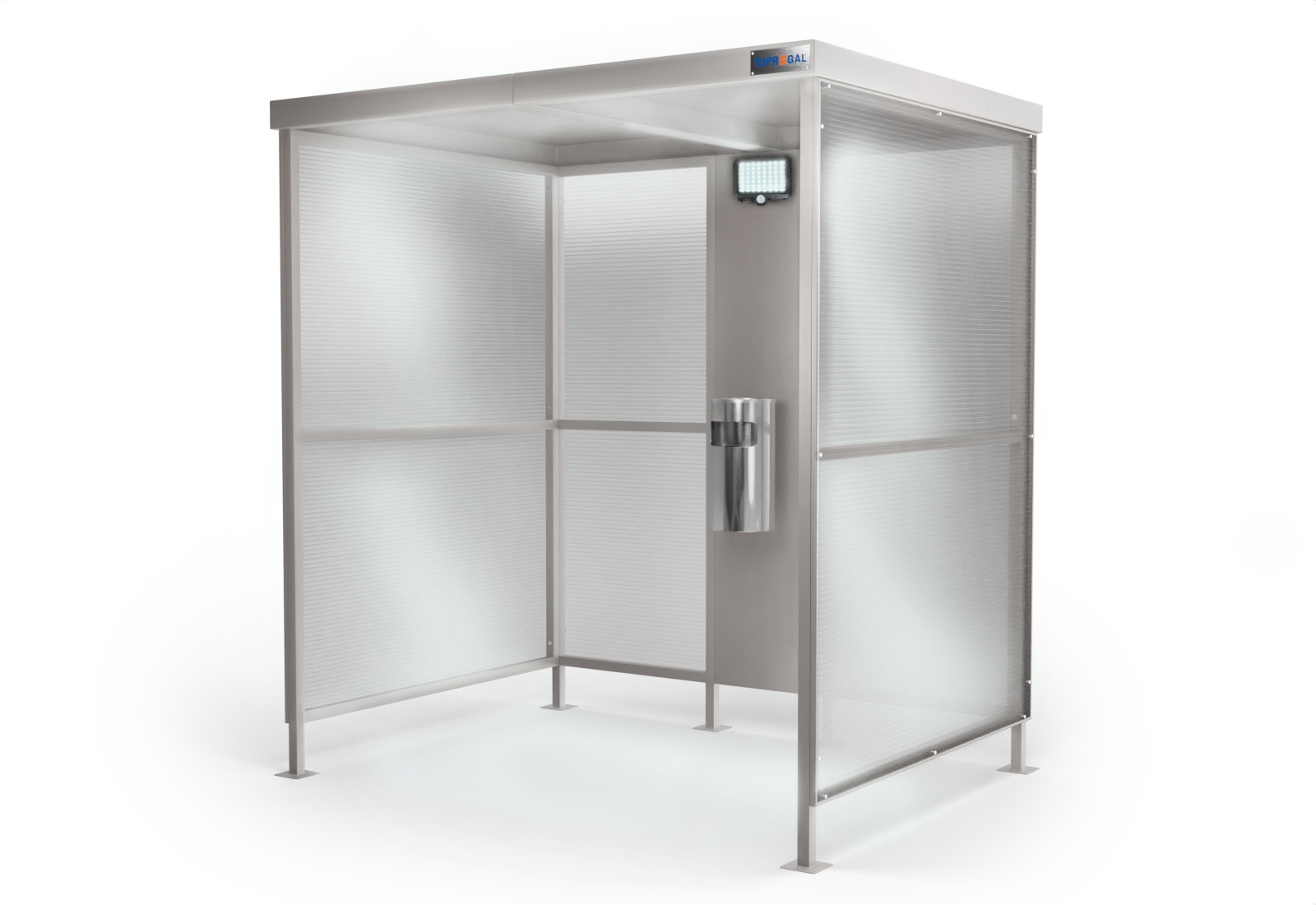 Stort rökbås US2200/7, 2.200 mm x 1.650 mm x 2.400 mm, inkl. LED-solcellslampa SLB800 och soptunna med askfat