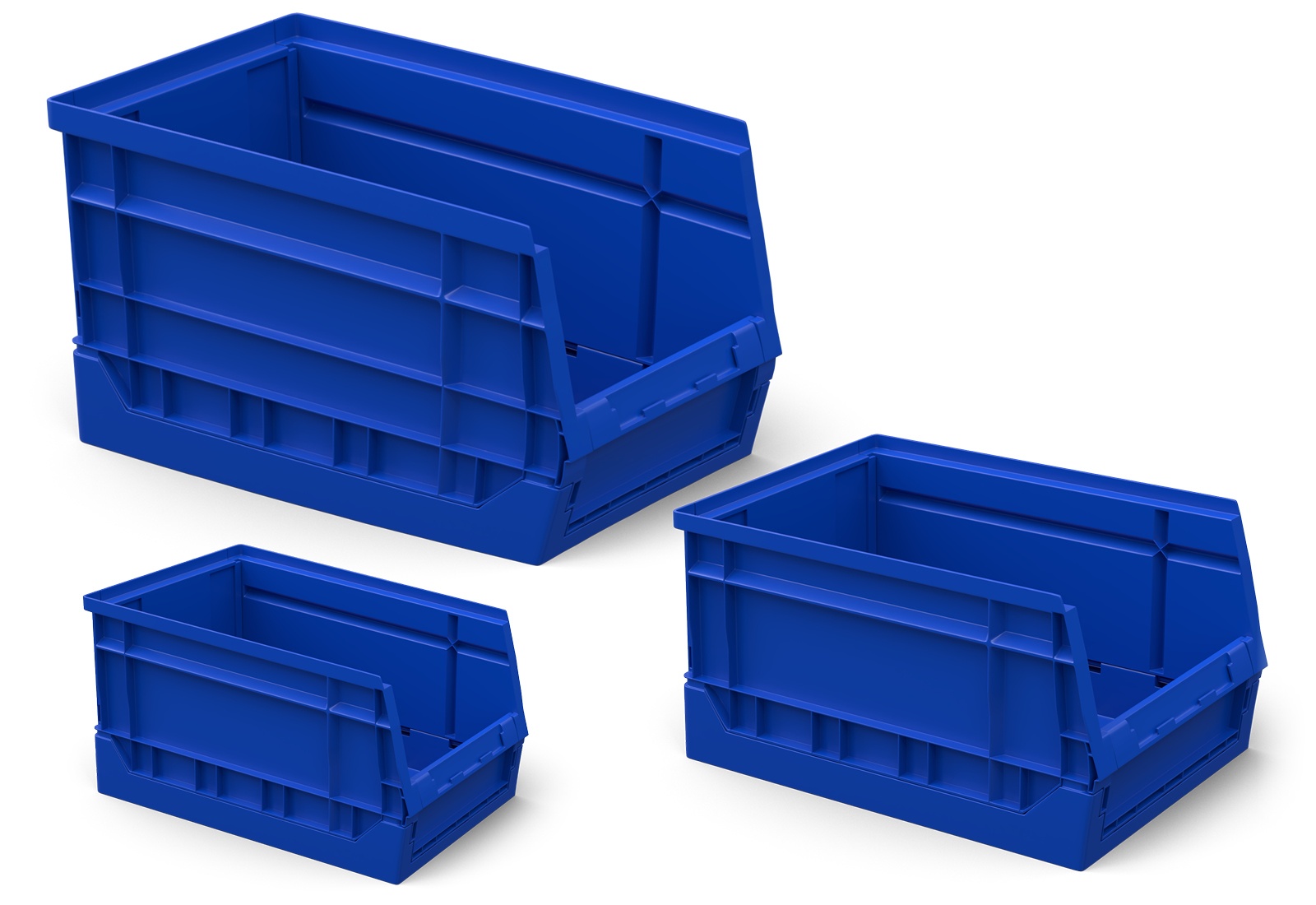 Dessa förvaringsfack med öppen front är idealiska för att fylla TOPREGAL förvaringshyllor, snedställda hyllplan, packbord, hyllplan och pallställ.