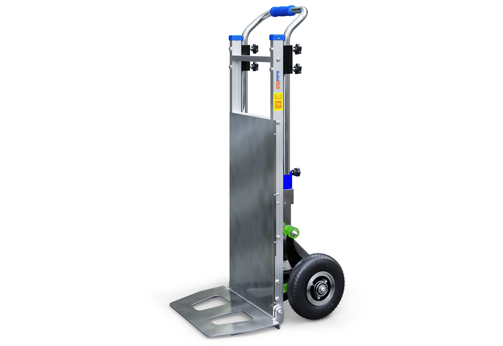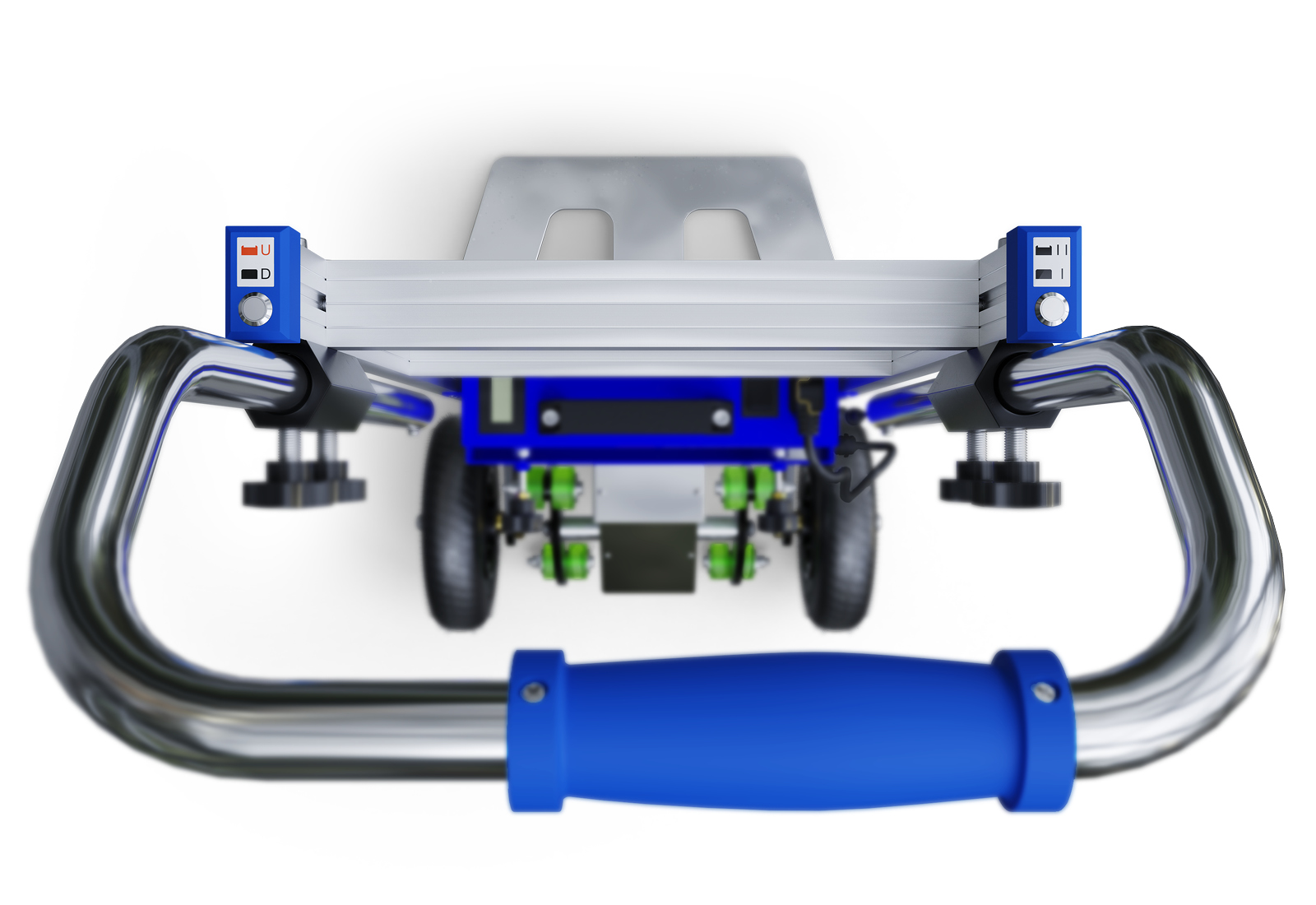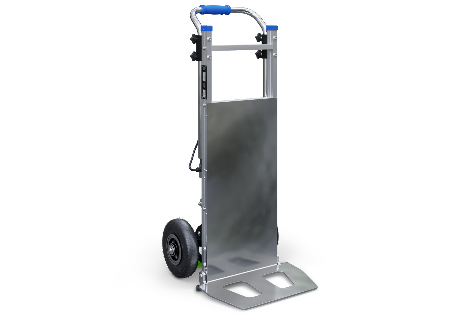 Den elektriska trappklättraren har ett höjdjusterbart och ergonomiskt handtag. För att säkerställa maximal komfort och säkerhet kan det enkelt justeras till olika användarstorlekar. Lastplattformen är hopfällbar och polyuretandäcken ger extra stabilitet och manövrerbarhet, även med tyngre laster som tvättmaskiner. Den maximala höjden för transport med den elektriska trappklättraren är 2000 mm, bredden och djupet beror på trappan i fråga.